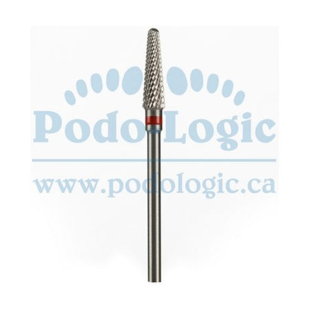 Carbide bur, rounded cone, fine teeth.