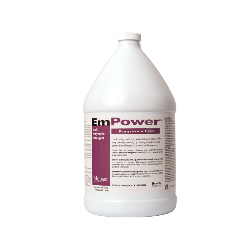 EmPower multi-enzymatic detergent is used for the pre-cleaning of critical and semi-critical medical devices prior to terminal sterilization or high-level disinfection. EmPower is specifically formulated with a blend of four enzymes to effectively remove a wide range of debris and protein soils, delivering superior cleaning performance.