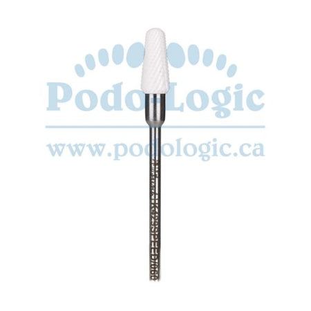 Busch ceramic burr, rounded cone, medium cross teeth, smooth end.