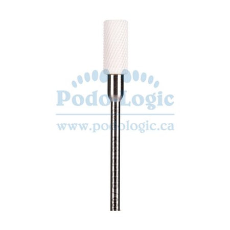 Busch ceramic bur, barrel-shaped, medium cross tooth, smooth end.