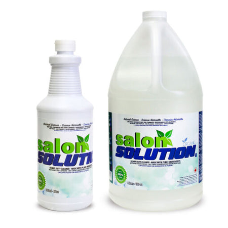 Salon Solution is the ideal cleaner for all surfaces such as plastic, metal, stainless steel, wood, laminate floors, mirrors, windows, walls, counters, vinyl and leather.