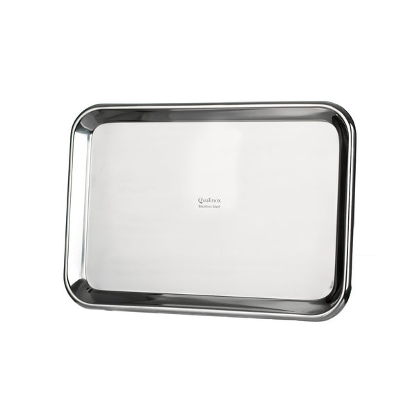 Stainless steel tray measuring 31cm x 21cm x 2cm.