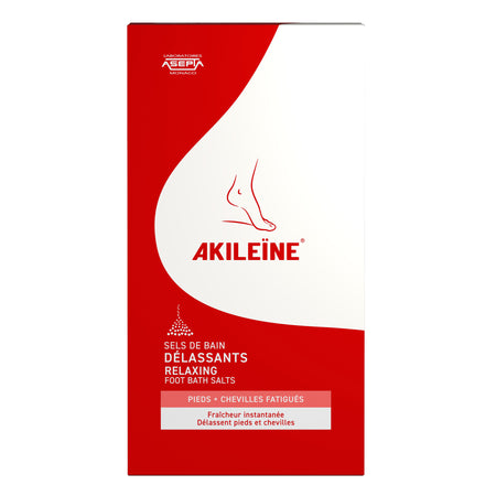 AKILEÏNE Relaxing Foot Bath Salts: The ultimate pampering experience for tired feet. The combination of salts with relaxing and refreshing properties soothes feet. Marine collagen lipoamino acid pleasantly and effectively moisturizes, cleanses, and deodorizes feet. Instant action.