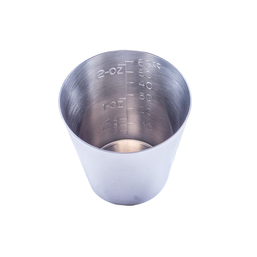 Metal cup graduated in ounces (capacity 2 oz.) 50mm diameter - Depth 47mm