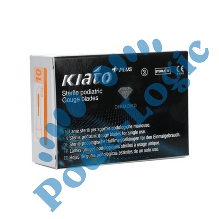 Boîte de 50 lames de gouge stériles en acier au carbone suisse avec papier protecteur VCI allemand.