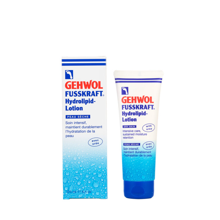 La lotion hydrolipidique GEHWOL FUSSKRAFT s’étale facilement pour offrir un soin quotidien à la peau sèche des pieds et des jambes. Elle pénètre rapidement pour mieux rééquilibrer les carences en lipides et en hydratation. La barrière protectrice naturelle de la peau se voit donc rééquilibrée. La présence d’ingrédients actifs tels que l’urée et la glycérine fixent l’hydratation dans les couches les plus profondes de l’épiderme, ce qui assouplit les callosités et en réduit la régénération prononcée. Les huiles d’avocat et de jojoba fournissent les lipides manquants à la peau sèche. Les céramides sont des composés qui jouent un rôle essentiel pour la protection de la peau. Ils en renforcent la couche extérieure, qui agit à titre de barrière pour la protéger du dessèchement. La desquamation cutanée extrême est réduite. L’application quotidienne de la lotion hydrolipidique GEHWOL FUSSKRAFT protège les pieds contre les odeur et les mycoses.
