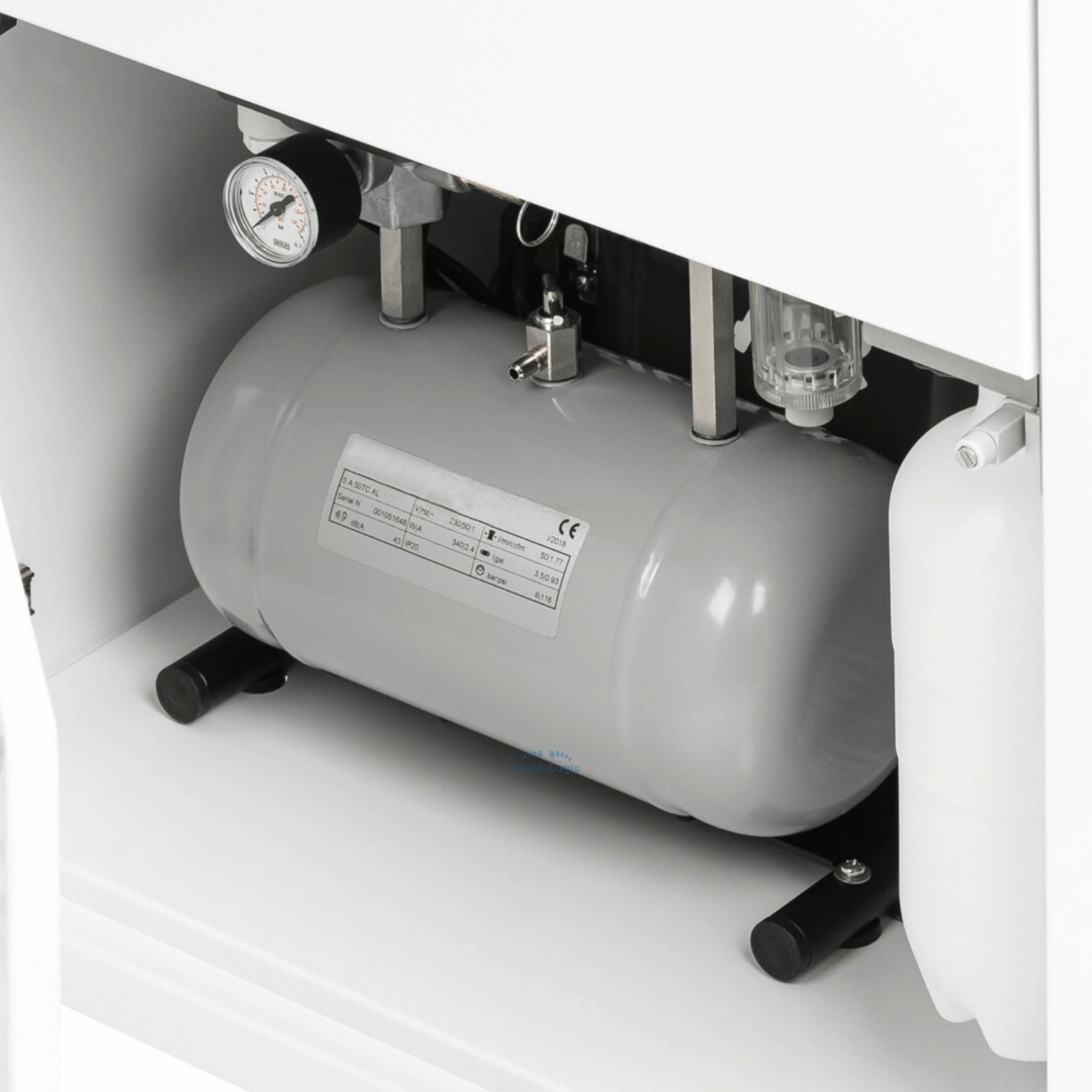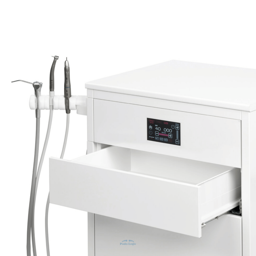 Le Master Cab offre une turbine à grande vitesse, une seringue à 3 fonctions (spray, eau, air) et un moteur de pièce à main spray. Le tout dans un meuble compacte et hygiénique. L'installation est très facile, il suffit de la brancher et c'est parti !