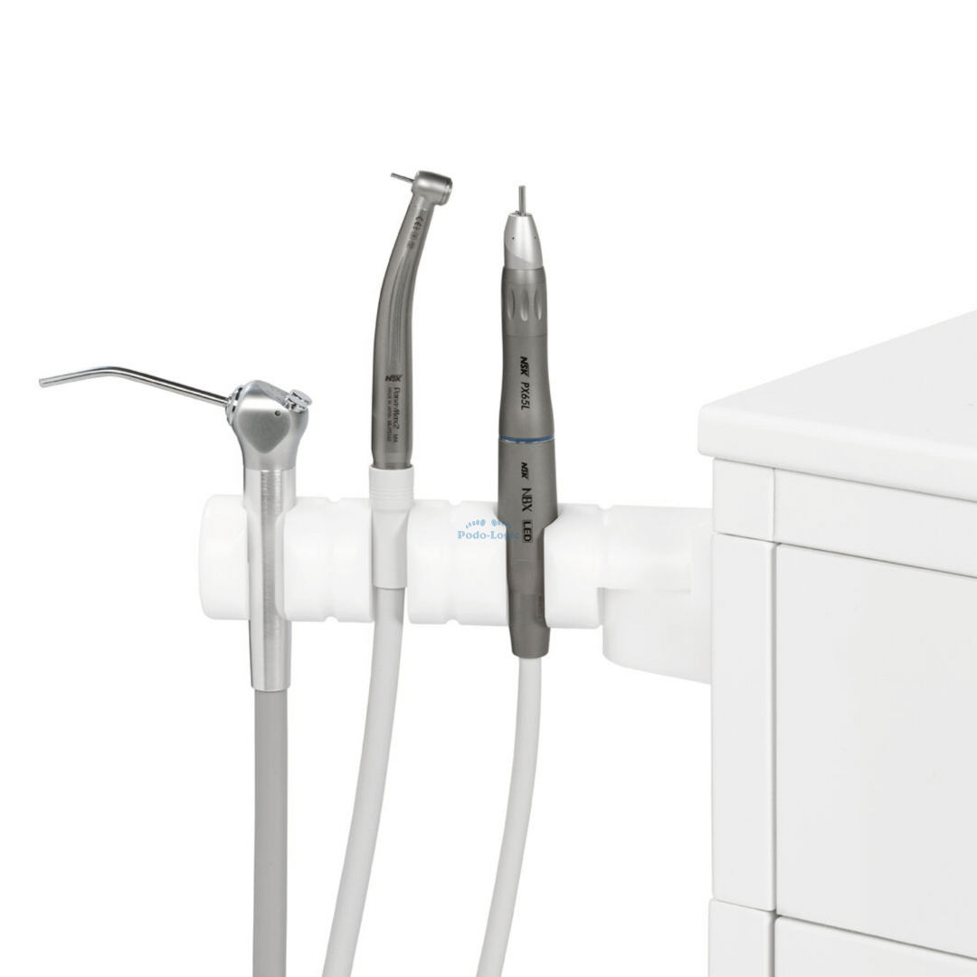 Le Master Cab est équipé d'une seringue à 3 fonctions (air, eau, spray), d'une turbine à grande vitesse et d'un micromoteur avec une pièce à main légère.