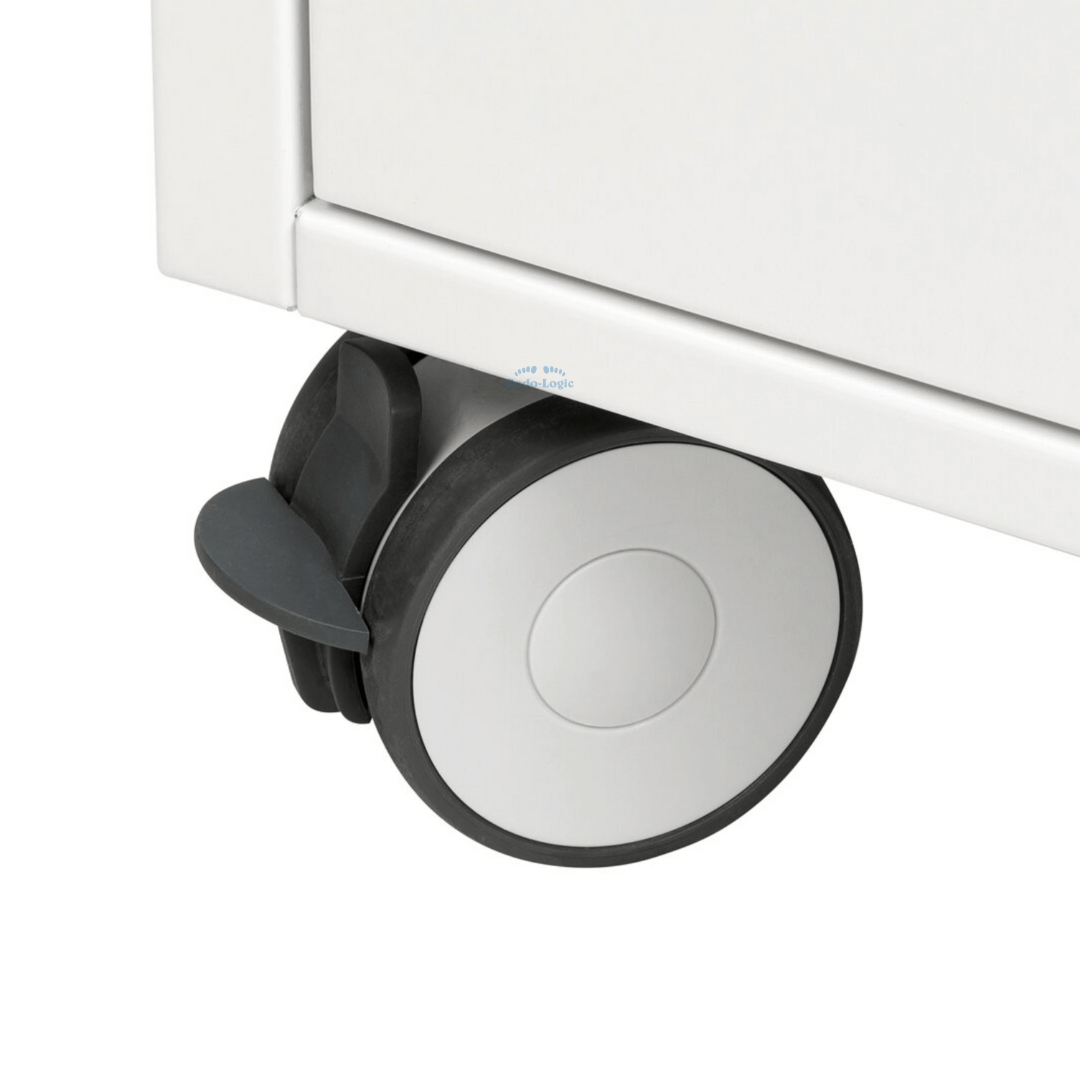 L'armoire est équipée de grandes roues verrouillables, ce qui la rend facile à déplacer.