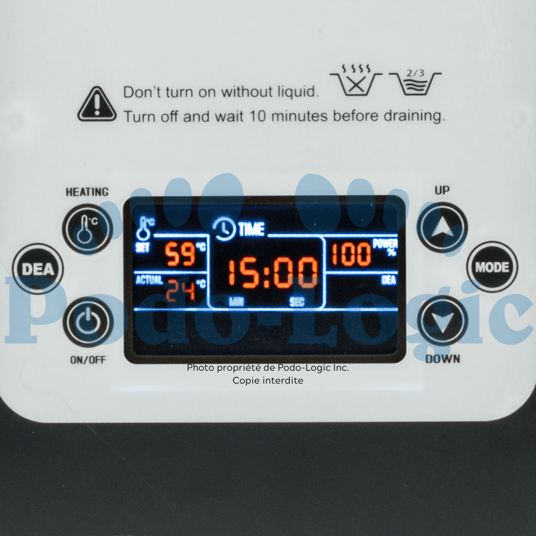 Tous les appareils ICANCLEAN ont un boîtier en acier inoxydable, qui peut être nettoyé et désinfecté facilement, et un réservoir en acier inoxydable résistant à la cavitation. Quatre fenêtres d’affichage à LED affichent de manière pratique le temps et la température. Conduit de vidange pour un drainage facile du liquide.